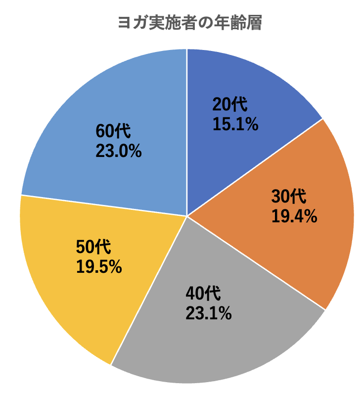 「日本のヨガマーケット調査」による、ヨガ実施者の年齢層をご覧ください。