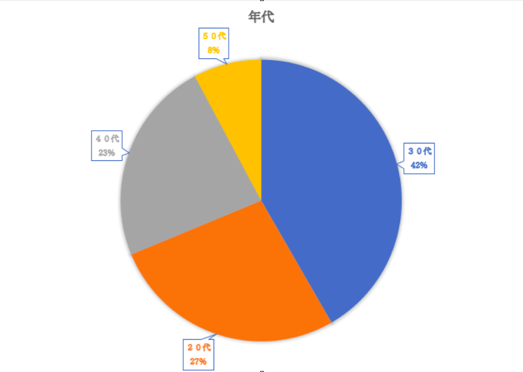 2020年以降で回答があった192名の世代別の割合は以下の通り。