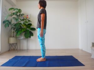 1.マットの上でタダアーサナから始めます。