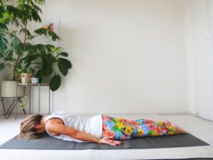 今回ご紹介するバッタのポーズ、これはうつ伏せの状態から始まります。あまり意識しにくい、自分の背面にアプローチができるポーズのひとつです。
