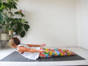 ヨガのポーズの中でもあまり種類が多くない、うつ伏せで行うバッタのポーズ。
