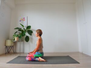 例えばポーズをとるときに、正座姿勢からお尻を左側に下ろした場合左のお尻がマットにつかないということが起きます。この状態を無理やり続けていると、ポーズの安定感がなく変なところに負荷がかかって痛めてしまいやすくなる、お尻や股関節にきちんとアプローチできません。また、どちらのお尻も浮いちゃう場合もあれば、どちらかだけというかたもとても多いので、自分のお尻のどちらが硬い傾向にあるのか知っておきましょう。