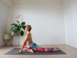 筆者がレッスンでエーカ・パーダ・アーサナを行うとき、ふとしたときの姿勢は丸まりがちな方もこのポーズのときは綺麗に背筋が伸ばせていることが多いです。背筋が縮こまり気味なかたこそぜひやってみましょう。