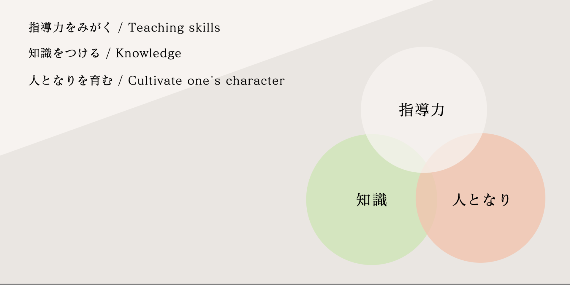 「指導力」・「知識」・「人となり」